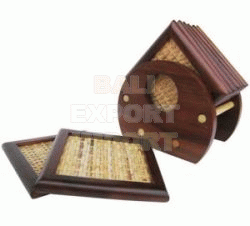 Set of 6 with stand Teak Wood Natral Fiber |