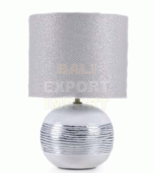 Table Lamp Wood Base Super White/Silver White Mica Shade Fabric Silver Net |