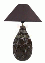 Terracotta base, dark brown Shade: Fabric and white mica |