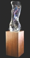 Solid Hot Glass Sculpture with Twist Wooden Base Removes for Shipping |